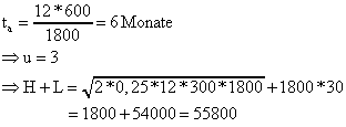 Lagerkosten (pro Stück) kl 0,25 GE/Monat/ME