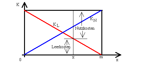 Gesucht ist die optimale Losgröße x, das Minimum der Gesamtkosten